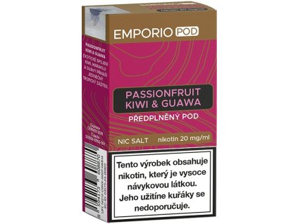 Osvědčená kombinace kiwi, marakuji a guavy... Předplněné cartridge EMPORIO POD obsahují 2ml SALT liquidu o síle nikotinu 20mg. Poměr 50VG/50PG