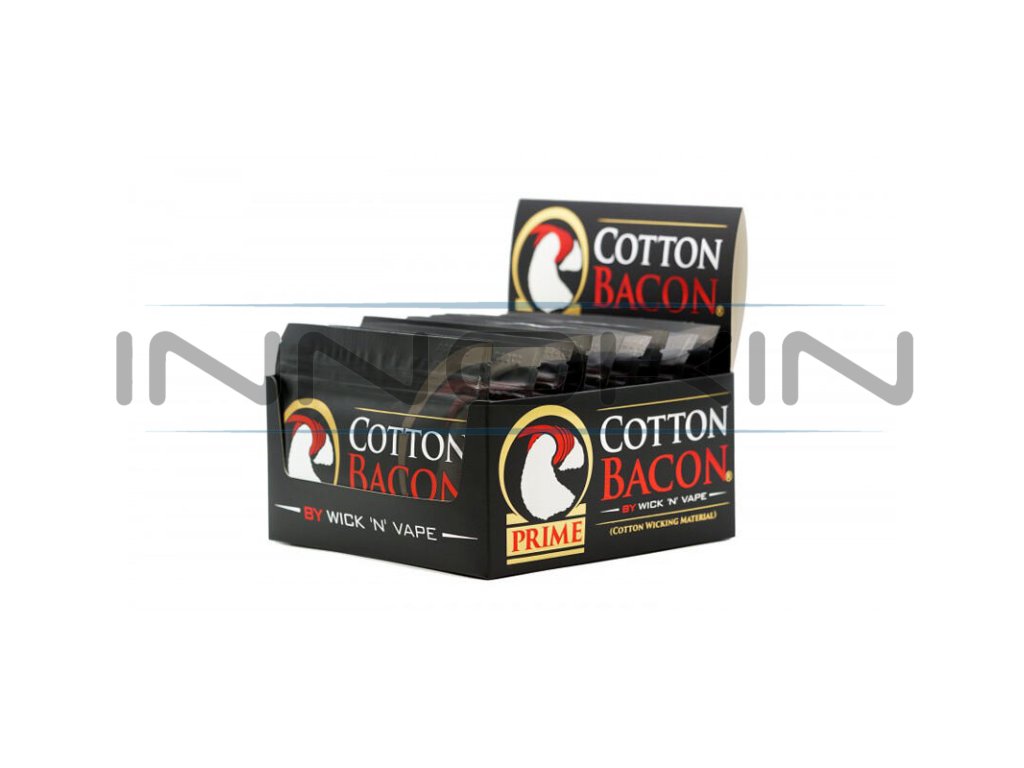 Cotton Bacon Prime je prémiovým nástupcem populární vaty Cotton Bacon V2 amerického výrobce Wick 'N' Vape. Jedná se o 100% přírodní bavlnu bez chemického ošetření a bělení. Díky pečlivému procesu zpracování se jedná o vynikající vatu se skvělou savostí pro vaše DIY atomizéry. S přírodní vatou Cotton Bacon Prime se mnohem lépe manipuluje, lépe se od sebe odděluji jednotlivé proužky a zároveň umožňuje mnohem rychlejší a jednodušší instalaci do spirálky. Verze Prime navíc nabízí až o 33% rychlejší absorpci e-liquidu, než u předešlé série V2.