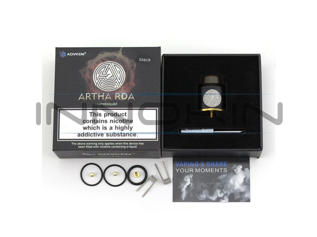 Advken Artha je překrásný RDA atomizér vhodný pro každodenní objevování nových příchutí vašich e-liquidů. Dokáže však zaujmout mnohem více prvky, než jen pouhým designem. Přesto je kvalitní zpracování jednou z hlavních výsad tohoto atomizéru. Celá konstrukce je vyrobena z kvalitních nerezových součástí za přispění odolného polyéterimidu, který nejen úžasně vypadá, ale zároveň nezkresluje chuť vašeho e-liquidu.