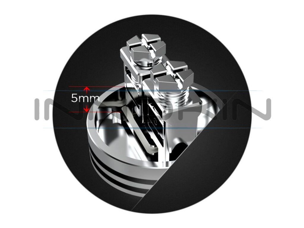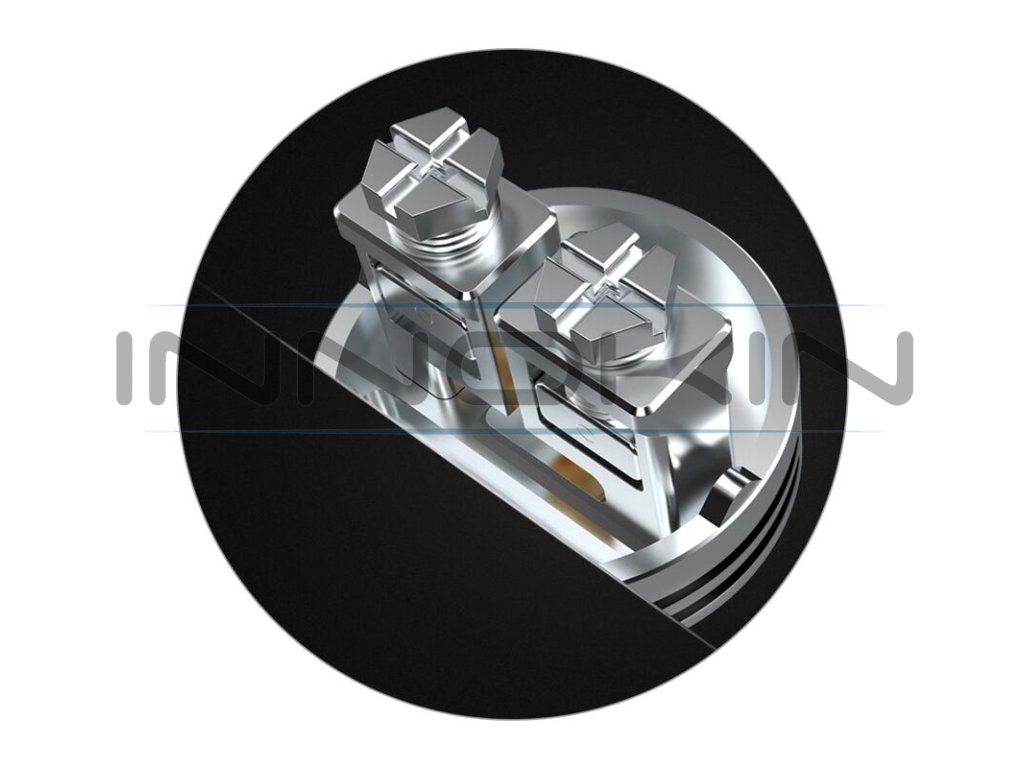 Uvnitř atomizéru se nachází precizně navržená základna. Tuto základnu tvoří dva sloupky, do nichž je možné nainstalovat jednu, nebo dvě spirálky dle vlastního výběru. Pokud preferujete větší produkci páry a výraznější chuť, osaďte ji dvěma spirálkami, jestliže máte raději příjemnější potah s menším množstvím páry, zvolte jednu spirálku. Otvory pro uchycení spirálek jsou dostatečně široké a umožňují použití i průměrově silnějších a složitějších drátů. Spirálky ukotvíte pomocí dvou šroubků umístěných ve vrchní části základny. Speciální clamp mechanismus umožňuje ideální dotažení nainstalovaných spirálek a snadnou instalaci i začátečníkům v oblasti DIY vapingu. Pro samotnou vatu zůstává také dostatek místa, pod základnou se nachází bazének s délkou 5 mm, do kterého lze velice pohodlně umístit přírodní vatu a stále vám zbyde dostatek prostoru například při squonkování.