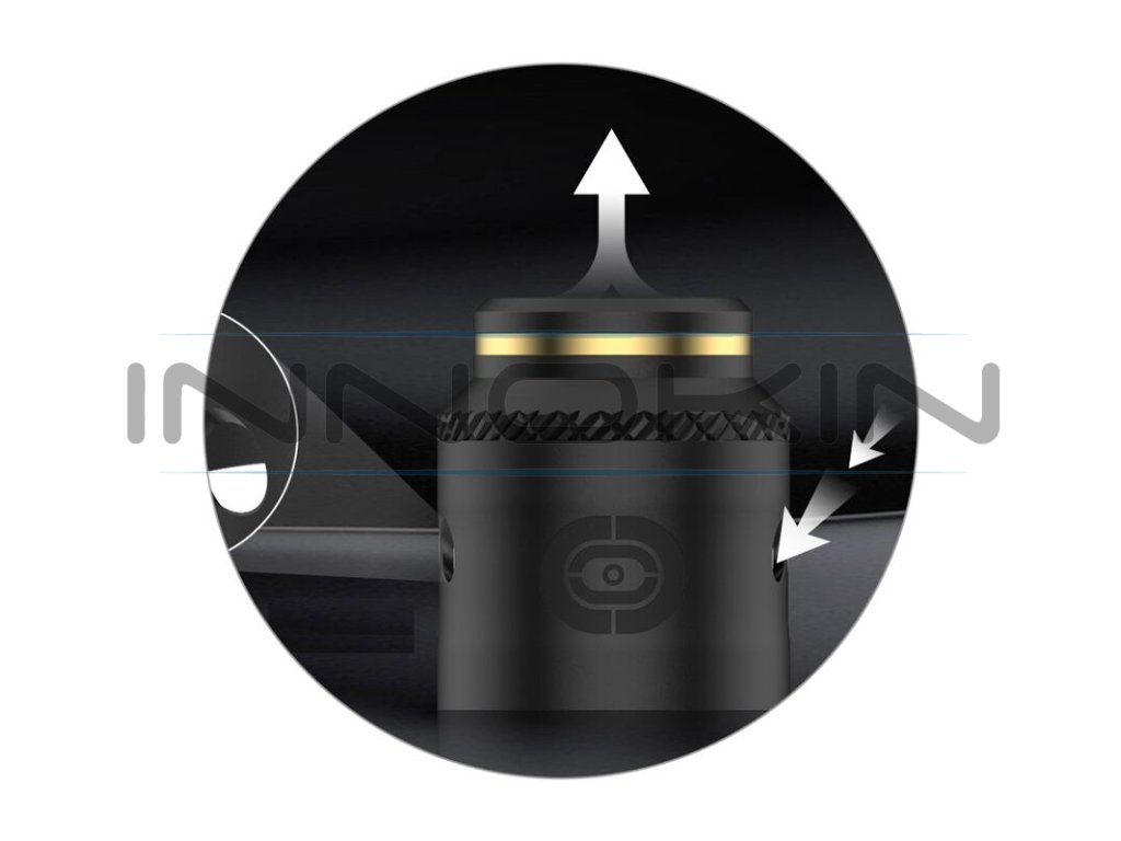 V boční části těla atomizéru se nachází airflow systém s prakticky řešenými otvory pro přísun vzduchu. Ty jsou mírně zkosené a nabízí tak efektivnější přísun vzduchu do atomizéru, díky čemuž je získána plnější a lepší chuť výsledné páry. Otvory jsou navíc regulovatelné, po obou stranách se nachází tři menší otvory, nicméně můžete si ponechat otevřenou například i jen jednu stranu. Volba je čistě na vás.