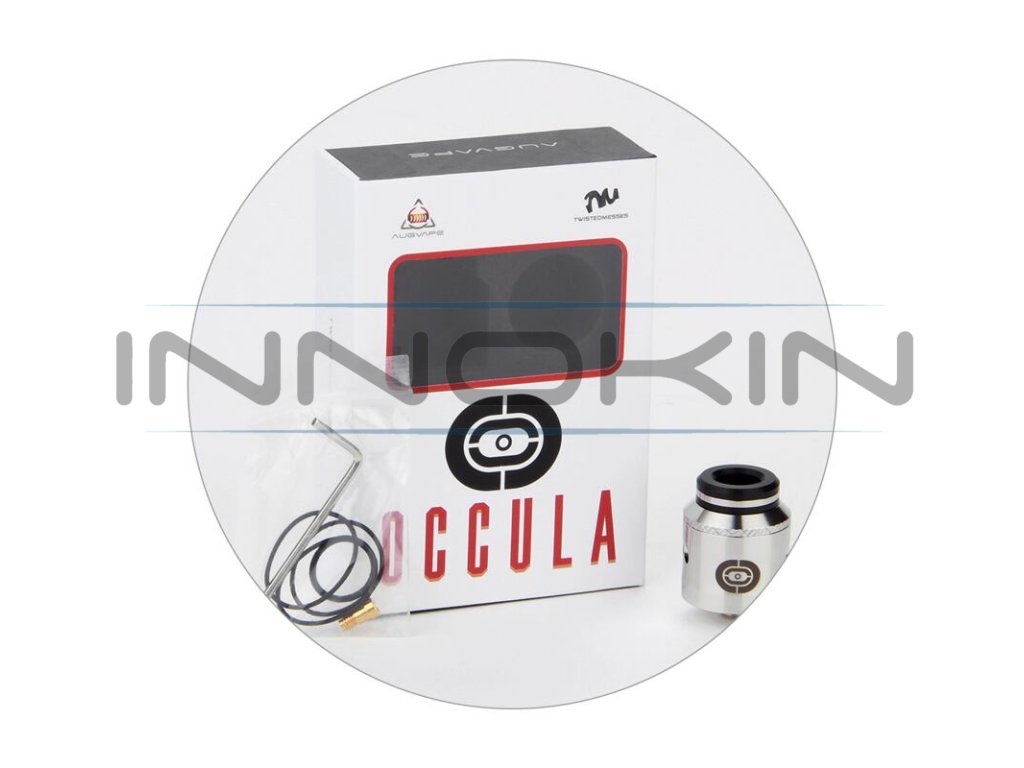 Augvape Occula je nový RDA atomizér určený pro přímé potahování do plic a ochutnávání nových e-liquidů. Tento atomizér vzešel ze spolupráce renomovaných vaperských společností Augvape a Twisted Messes. Nabídne tak precizní dílenské zpracování, minimalistický design a především jedinečnou základnu pro snadné osazení spirálkami. Tělo nabídne také velice praktické rozměry. Délka celého atomizéru je jen 33 mm a průměr se zastavil na 24 mm. Díky těmto rozměrům si skvěle rozumí s drtivou většinou modů na dnešním trhu. Ve spodní části atomizéru se potom nachází závit typu 510 pro kompatibilitu s mody se stejným typem závitu. Na tomto závitu najdete pozlacený centrpin pro perfektní kontakt a vodivost. Centrpin se dá kdykoliv vyšroubovat a nahradit dutým BF pinem pro kompatibilitu se squonk mody. Atomizér je tak skutečně všestranný a můžete ho využívat buď na klasické dokapávání, nebo na zásobení přímo ze squonk lahvičky ve squonk modech.
