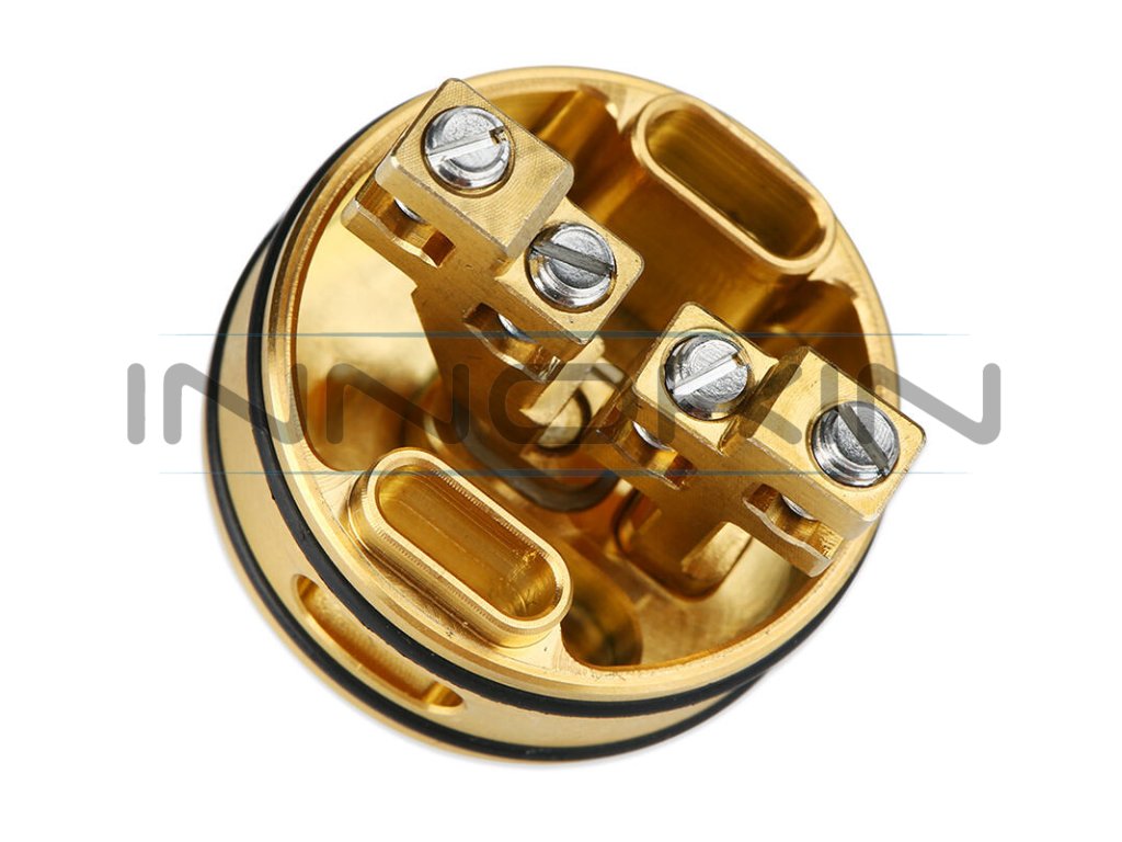 Základem atomizéru je skvělá a prostorná základna, do které lze nainstalovat buď jednu, nebo rovnou dvě spirálky. Díky širokým kontaktům ujišťuje výrobce své uživatele, že lze instalovat i širší a různě motané dráty. V základně je na ně dostatek prostoru. Ve spodní části se nachází závit typu 510 s náhradním BF pinem. Po jeho instalaci můžete tento clearomizér používat i na doplňovací squonk mody.