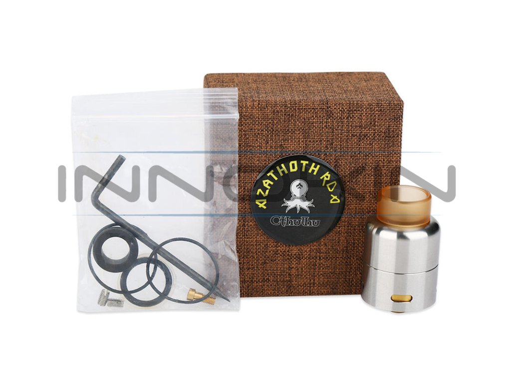 Cthulhu Azathoth RDA je dalším atomizérem do rozšiřující se nabídky výrobce Cthulhu Mod. Azathoth je však atomizér typu RDA. Jedná se tedy o dokapávací atomizér, do kterého se e-liquid kape přímo na spirálky.