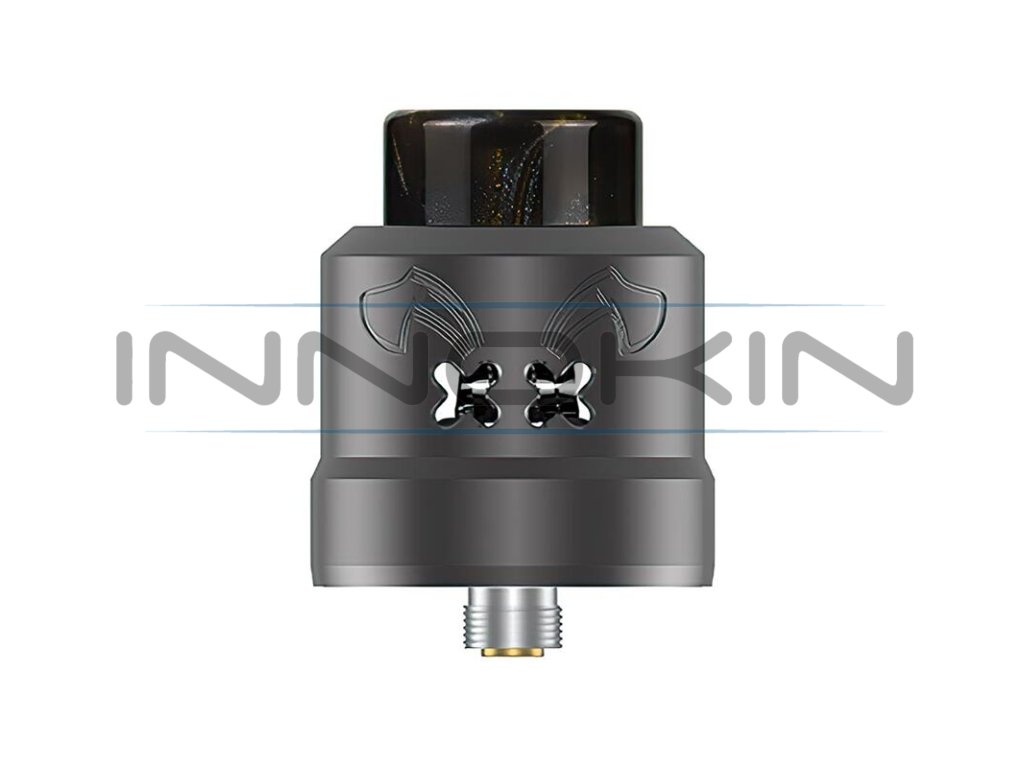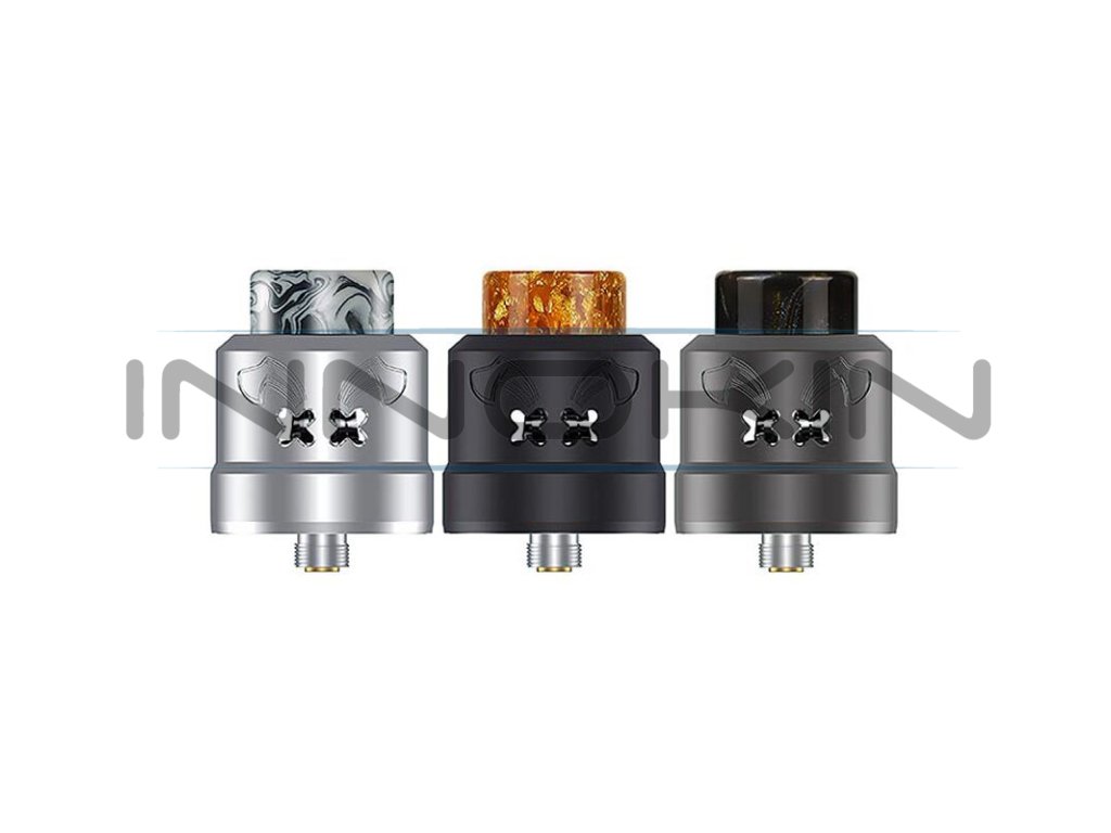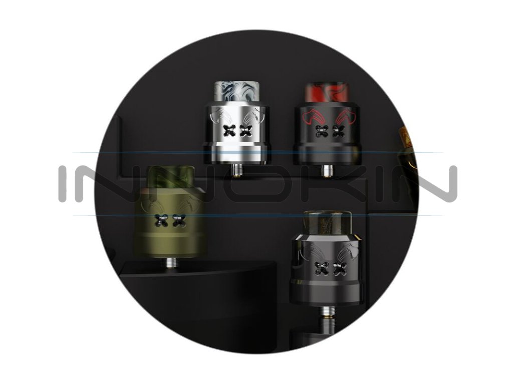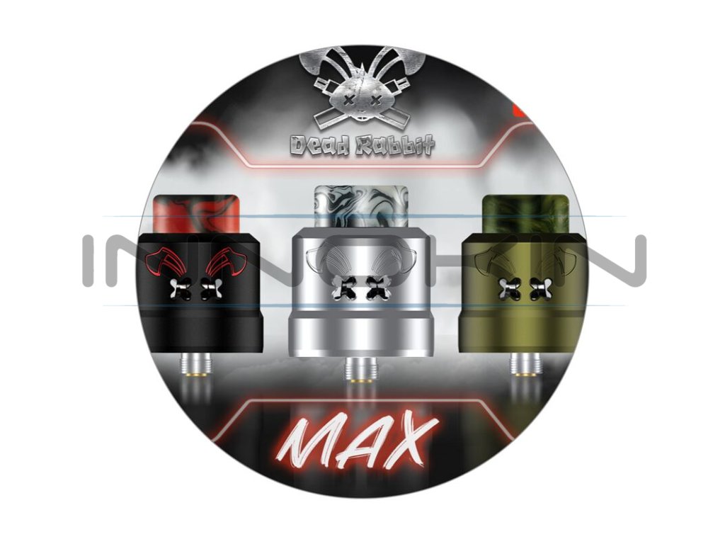 Hellvape Dead Rabbit Max RDA je robustní a bytelný atomizér, jehož použití doporučujeme zejména s většími a výkonnějšími mody. Jeho délka činí 37,8 mm a průměr jej potom 28 mm. Ve spodní části je vybaven závitem typu 510 s pozlaceným centrpinem, který budete moci nahradit dutým BF pinem v balení pro použití se squonk mody. K dostání je v moderních konvenčních barvách, které skvěle ladí s kterýmkoliv odstínem modu.