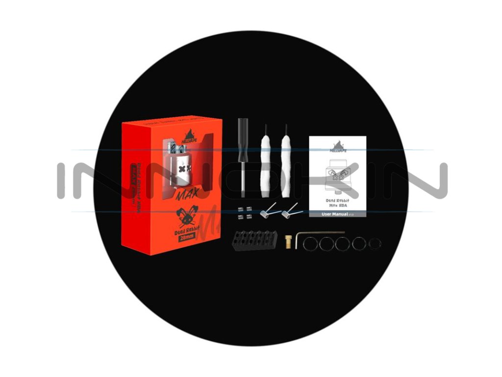 Hellvape Dead Rabbit Max RDA je dokapávací atomizér, který skvěle poslouží jak na standardní kapání e-liquidu přímo na spirálky, tak také pro vapování ze squonk modu. V základním balení na vás čeká dutý BF pin, který je možné našroubovat do spodního závitu. Přímo pod spirálkami je potom umístěna spodní část se 7 mm hlubokým bazénkem na bezproblémové zásobení atomizéru e-liquidem během squonkování.
