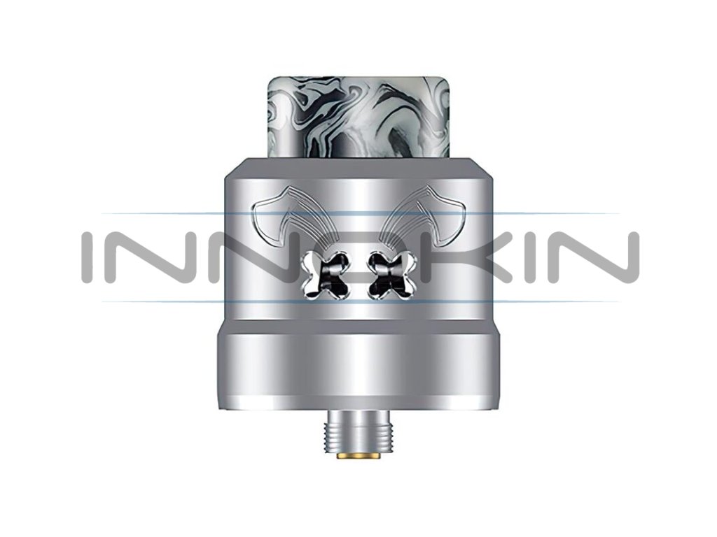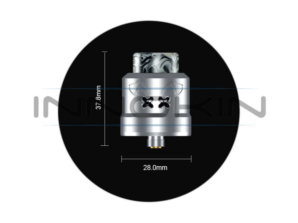 Hellvape Dead Rabbit Max RDA je robustní a bytelný atomizér, jehož použití doporučujeme zejména s většími a výkonnějšími mody. Jeho délka činí 37,8 mm a průměr jej potom 28 mm. Ve spodní části je vybaven závitem typu 510 s pozlaceným centrpinem, který budete moci nahradit dutým BF pinem v balení pro použití se squonk mody. K dostání je v moderních konvenčních barvách, které skvěle ladí s kterýmkoliv odstínem modu.