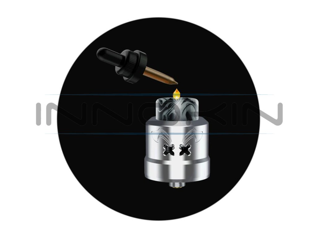 Uvnitř samotného atomizéru na vás čeká prostorná bezsloupková základna, kterou je možné osadit až dvěma spirálkami dle vlastního výběru. Díky větším portům pro připojení spirálek budete moci bez problému používat také průměrově silnější dráty. Základna navíc umožňuje velice snadnou manipulaci, s montáží si tak budou rozumět i začátečníci. Ačkoliv se jedná o dokapávací atomizér, nabídne hned dvě varianty doplňování. Mimo standardní kapání e-liquidu na spirálky můžete nahradit centrpin v závitu za speciální dutý BF pin. Základna ve spodní části atomizéru disponuje 7 mm hlubokým bazénkem, do kterého se vejde velké množství e-liquidu během squonkování. Možnosti využití jsou tak velmi rozsáhlé. Hellvape Dead Rabbit Max RDA dokáží naplno využít jak pokročilí uživatelé, tak také začátečníci, jedná se o jeden z nejlepších RDA atomizérů pro přímé potahování na současném trhu.