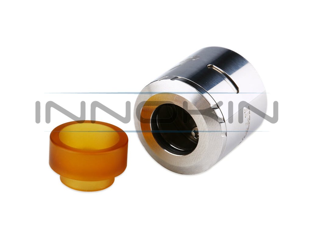 Ve vrchní části se nachází široký náustek vyrobený z polyéterimidu. Ten zajistí vynikající izolaci tepla od spirálek, ale zároveň nezkreslenou chuť. Navíc velice stylově vypadá. S náustkem se pojí ještě jedna novinka. Tento atomizér využívá dvojí způsob plnění. Už není potřeba pro dokapání e-liquidu na spirálky odšroubovat uzávěr, popřípadě sejmout celou čepici. Jednoduše nakapejte e-liquid přímo do náustku. Ten je dostatečně široký, aby umožnil právě tento nový a nenáročný způsob plnění.
