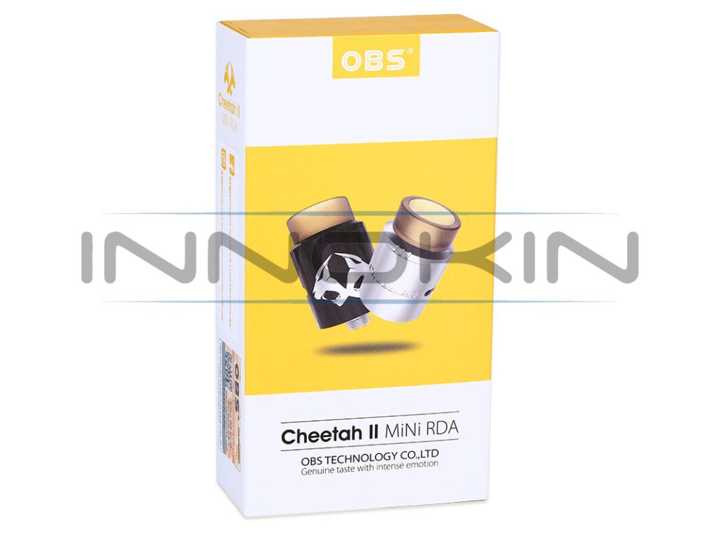 Nástupce oblíbeného RDA atomizéru ve verzi Mini přináší především vynikající podání chuti v malém těle. Jedná se o kompaktní atomizér se solidní výbavou. OBS Cheetah 2 Mini nabídne délku pouhých 35,5 mm včetně náustku. Průměr je potom 22 mm, takže je vhodný i na menší mody. Ve vrchní části se nachází nový široký náustek vyrobený z polyeterimidu. Tento plast zaručuje vynikající izolaci tepla od spirálek a výborné podání chuti. Je navíc vysoce odolný.
