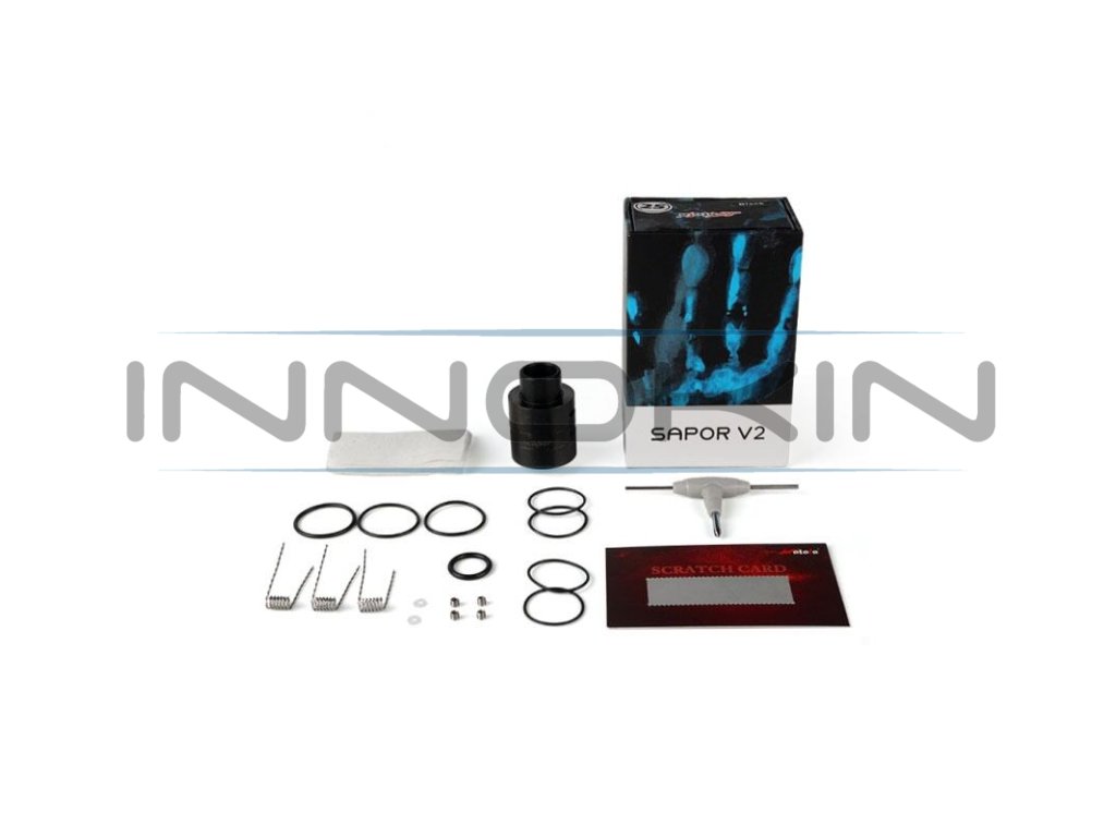 RDA atomizér od společnosti WOTOFO s označením Sapor V2 je vynikajícím produktem pro náročné uživatele, vyžadující tu nejlepší chuť a obrovské množství páry. S průměrem 25mm se řadí mezi větší atomizéry, je vhodný především na větší mody. Velocity základna je vhodná pro instalaci dvou spirálek a díky své hloubce pojme velké množství vaty. Není proto zapotřebí dokapávat příliš často. Díky regulaci sání lze nastavit přívod vzduchu do atomizéru a tím ovlivnit i tuhost potahu. Samozřejmostí je i PEEK izolátor německé výroby. Tělo atomizéru je vyrobeno z kvalitní nerezové oceli 304, což dodává tělu dokonalý vzhled a zároveň vysokou odolnost a kvalitu.