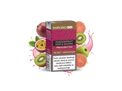 Osvědčená kombinace kiwi, marakuji a guavy... Předplněné cartridge EMPORIO POD obsahují 2ml SALT liquidu o síle nikotinu 20mg. Poměr 50VG/50PG