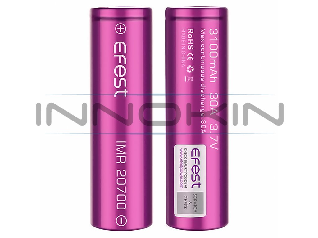 Efest IMR 20700 3100mAh 30A je výkonná batarie typu 20700, která je vhodná pro drtivou většinu výkonných a nízkoodporových cigaret, modů a gripů, podporujících uvedený typ baterie, které vyžadují pro svůj provoz vysoký vybíjecí proud. Zpravidla se jedná o e-cigarety a gripy, které jsou primárně určené pro přímý styl vapování (DL). Baterii lze samozřejmě použít i pro méně výkonné zařízení, které tento výstupní proud nepožadují.
