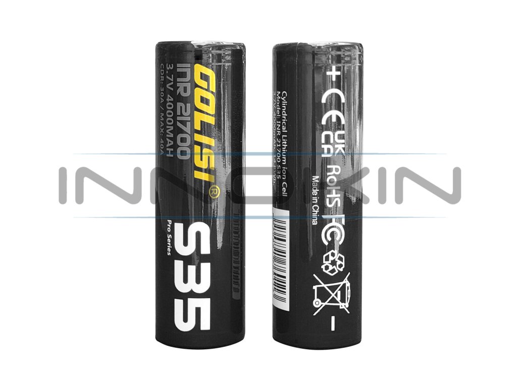 Nová revoluční baterie typu Golisi S35 21700 představuje revoluci v pravém slova smyslu. Tato baterie nabízí obrovskou kapacitu a efektivní vybíjecí proud, který rozžhaví váš atomizér rychleji, než kdykoliv předtím. Baterie zároveň drží svou kapacitu mnohem lépe, než předchozí články 18650. Tato baterie je vhodná pro gripy a mody se slotem 21700. Její kapacita dosahuje 4000 mAh a vybíjecí proud až 40 A. Baterii lze použít převážně pro nízkoodporový vaping.