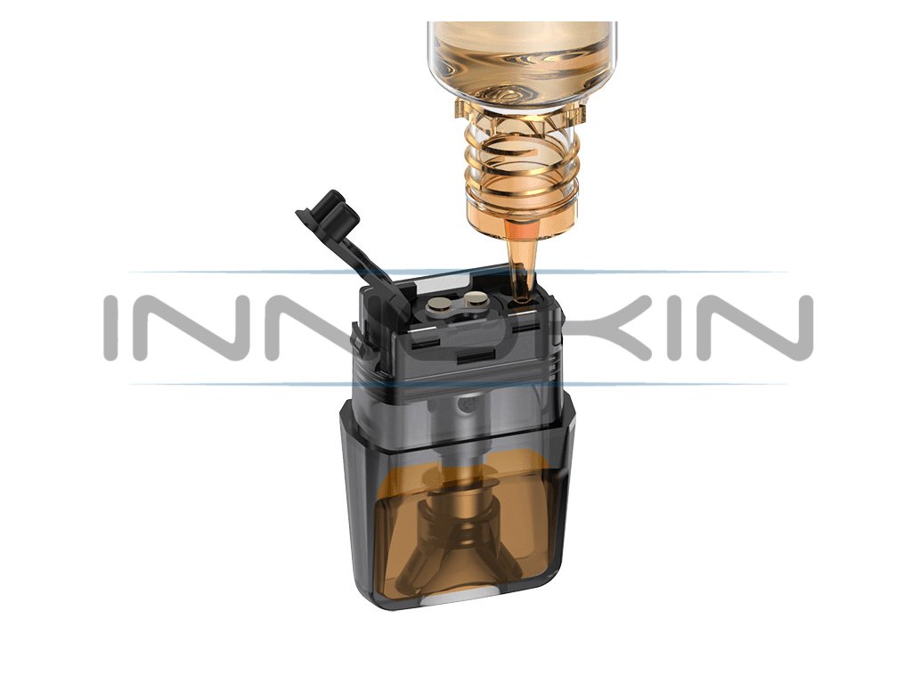 Pod Cartridge sloužící jako zásobník pro Vaší oblíbenou náplň (e-liquid), která v tomto případě slouží zároveň i jako náustek a nosič samotné žhavící hlavy. Plnění a výměna cartridge je velmi jednoduchá. Pro plnění stačí vytáhnout Cartridge z těla e-cigarety a doplnit vámi oblíbeným e-liquidem. Samotná instalace pod cartridge do těla cigarety probíhá pouhým nasunutím. Stav hladiny je díky průhlednosti Cartridge dobře vidět, a tak víte, jak na tom aktuálně jste a jestli můžete třeba vyrazit na celodenní výlet.