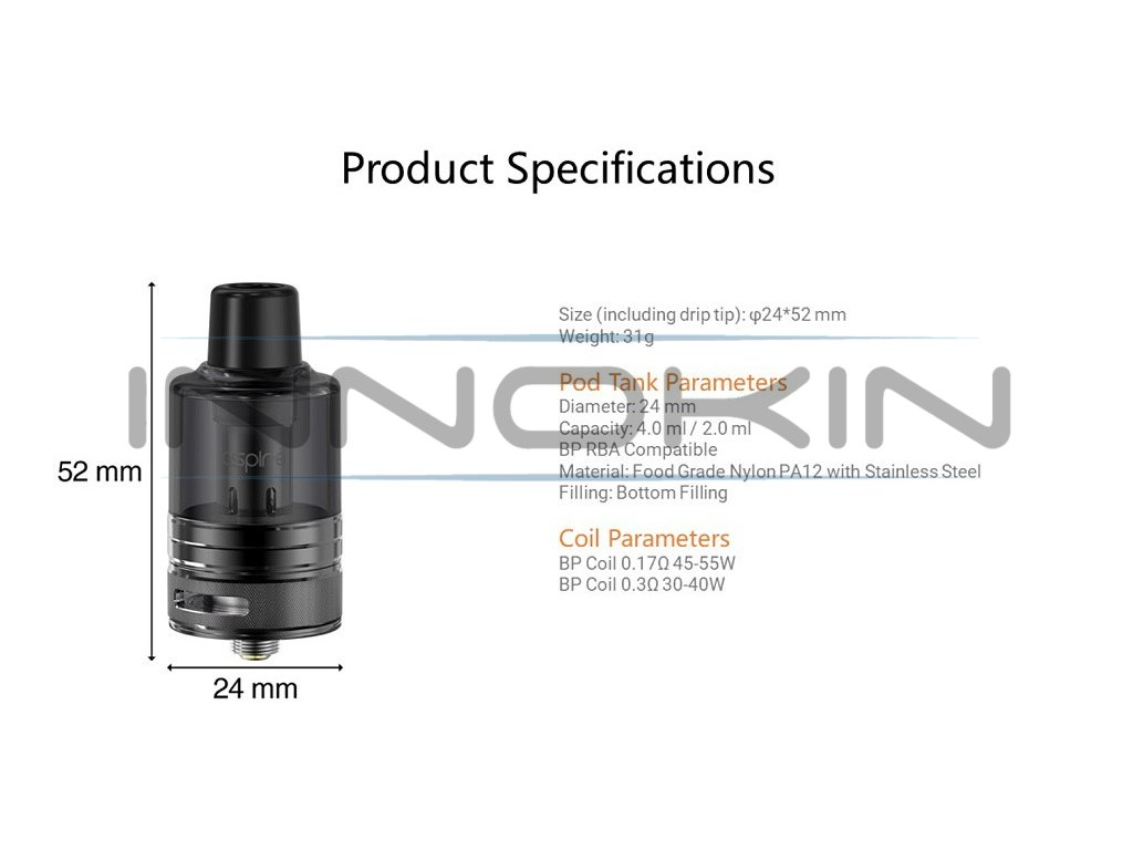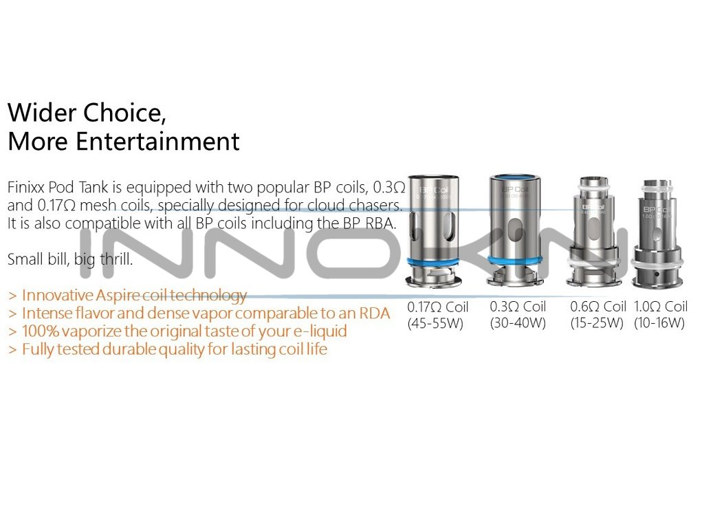 Aspire je jeden z velkých výrobců, který od roku 2013 posouvá dopředu zařízení, ale i způsob vapování. Aspire první představil takzvané BVC hlavy. Aspire se zaměřoval na tyl kouření pusa-plíce, ale jako první přišel s nízkoodporovým tankem. Aspire dále pokračuje na pevných základech. Aspire má pro začátečníky skvělé sady, pokročilí si užijí novou řadu nízkoodporových tanků