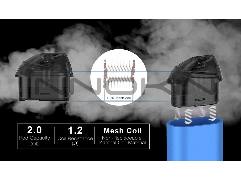 Náhradní Pod Cartridge pro elektronickou cigaretu Aspire Minican, Minican+, Minican 2, o objemu 2ml s integrovanou žhavící hlavou s mesh kanthalovou spirálkou s odporem 1,2ohm.