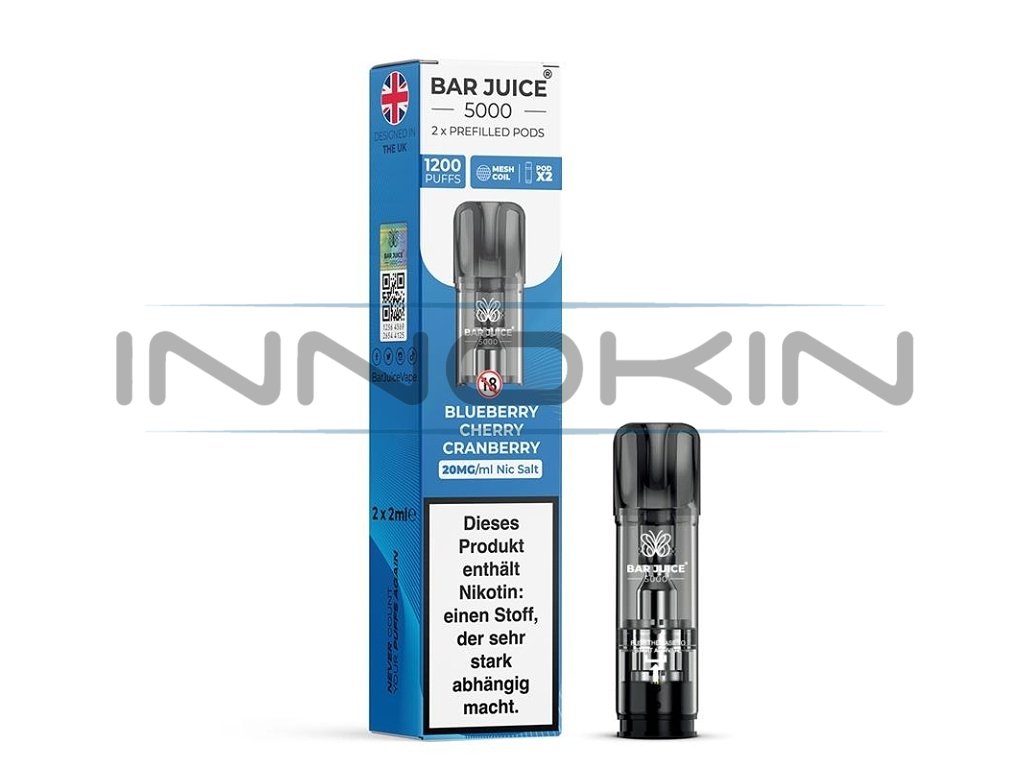 BAR Juice 5000 Pod Blueberry Cherry Cranberry 20mg 2ks Borůvka, Třešeň, Brusinka