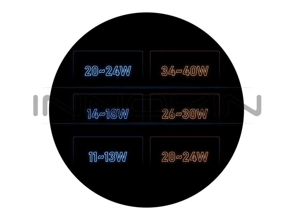 Rozsah výkonu v režimu POWER a doporučený styl potahu: