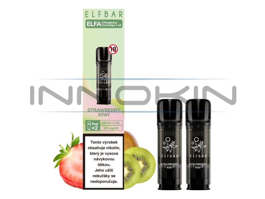 Výrazné tóny kiwi se sladkou a šťavnatou jahodou... Předplněné cartridge Elf Bar ELFA obsahují 2ml liquidu o síle nikotinu 20mg. Cartridge obsahují prvotřídní liquid s nikotinovou solí, díky které dochází k rychlejší a kvalitnější vstřebatelnosti = bez dráždivého pocitu v krku oproti klasickým liquidům. Nedílnou součástí cartridge je spirálka Mesh pro rychlejší žhavení, rovnoměrné odpařování, vynikající chuť liquidu a větší tvorbu páry. Poměr 50VG/50PG