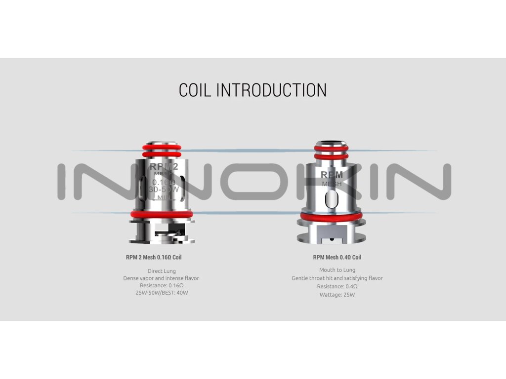 Smok RPM 2 Cartridge Pro použití se žhavící hlavu s označením RPM 2, s mesh spirálkou a celkovým odporem 0,16Ω, která se díky svému nízkému odporu velmi hodí pro DL styl potahování (přímým potahováním do plic). Doporučený výkon pro tuto žhavící hlavu je mezi 25-50W, avšak nejlepšího podání chuti dosahnete při výkonu 40W.