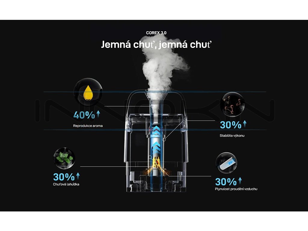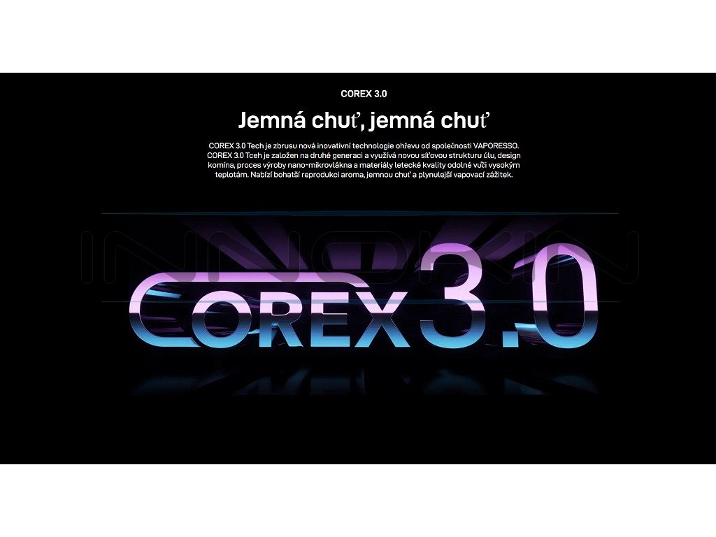 Technologie COREX 3.0COREX 3.0 je nejnovější generace ohřívací technologie od Vaporesso, která staví na předchozích verzích s výrazným vylepšením. Využívá strukturu Hive-Mesh s jemnějším topným tělesem pro rovnoměrnější vedení tepla a stabilnější teplotu atomizace. Materiál topného tělesa byl změněn z nikl-chromu na železo-chrom-hliník, což zvyšuje topnou plochu o 40%. |