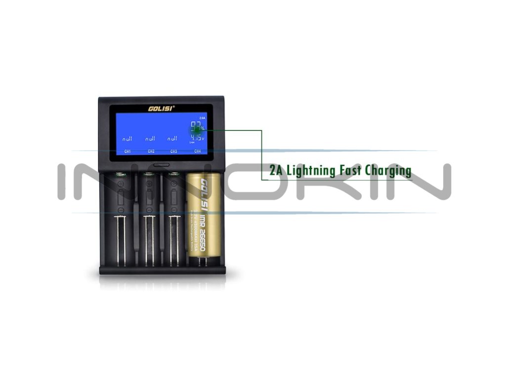 Golisi I4 je multifunkční nabíječka pro řadu článkových baterií a pro běžně užívané baterie v elektronických gripech. Jedná se o upgradovanou a vylepšenou verzi původní nabíječky Golisi S4. Nabíječka Golisi I4 nabídne hned čtyři nabíjecí sloty. Při nabíjení čtyř baterií souběžně je možné dobíjet proudem 0,5 A v každém slotu, pokud však budete narychlo potřebovat dobít alespoň jednu baterii, postačí připojit jednu dobíjenou baterii do pravého slotu nabíječky, tento slot disponuje funkcí rychlého dobíjení proudem až 2 A.