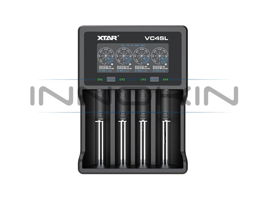 XTAR VC4SL je upgradovanou verzí nabíječky XTAR VC4S. Jedná se o kvalitní multifunkční nabíječku článků a dalších baterií. Nabíječka disponuje hned čtyřmi nabíjecími sloty pro dobíjení až čtyř baterií současně, každý slot disponuje individuálním okruhem, nabíjet proto můžete také například pouze jednu baterii, nebo třeba jen dvě baterie. Při dobíjení jedné baterie lze také využít funkci extrémně rychlého dobíjení proudem 3A. Při nabíjení můžete také měnit dobíjecí proud manuálně pomocí tlačítka Curr. umístěném pod displejem. Druhé tlačítko Mode slouží pro přepínání dalších hodnot nabíječky. Nabíječka XTAR VC2S podporuje většinu běžně dostupných článků typu Li-ion, IMR, INR, ICR, Ni-MH a Ni-CD. Ve vrchní části nabíječky se nachází velký a přehledný LCD displej, který zobrazuje všechny potřebné parametry během nabíjení. Na displeji se zobrazuje dobíjecí proud baterií, napětí baterií a kapacita baterií.