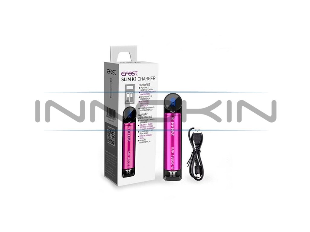 Efest Slim K1 je nová kompaktní USB nabíječka se snadnou obsluhou a jednoduchým ovládáním. Nabíječka Efest Slim K1 disponuje jedním nabíjecím slotem s maximálním výstupním proudem 1 A. Nabíječka Efest Slim K1 podporuje velkou většinu oválných baterií na trhu, dobíjet tak můžete své oblíbené články 18650, 21700, 20700, 26650 a 18350 s výstupním proudem 1 A. O indikaci nabíjení se postará LED dioda nad slotem.