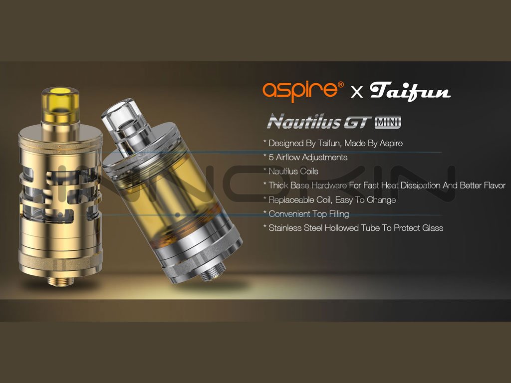 Clearomizer aSpire Nautilus GT Mini je zmenšenou verzí velmi oblíbeného Clearomizeru aSpire Nautilus GT, který si získal mezi uživateli elektronických cigaret opravdu velkou oblibu, a to předně díky svému kvalitnímu zpracování a dokonalým podáním chuti. aSpire tak vyslyšel volání mnoha uživatelů a přichází tak se zmenšenou verzí, při jejíž výrobě navázal na předchozí úspěšnou spolupráci se špičkovým výrobcem Taifun.