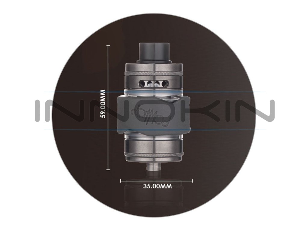 Dotmod dotTank Max je krásně zpracovaný atomizér bez zbytečných rušivých prvků. Nabídne uhlazené hrany s důrazem na minimalistický design, díky čemuž si bude designově rozumět s kterýmkoliv modem. Jeho délka se zastavila na 59 mm a průměr v části se sklem činí 35 mm, hodí se proto zejména k větším modům s dostatkem prostoru pro jeho uchycení. Díky závitu 510 je potom kompatibilní s běžně dostupnými mody na trhu.