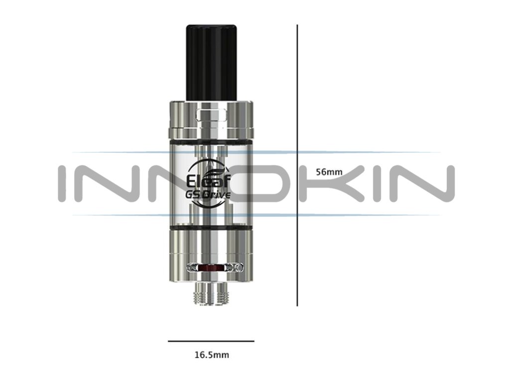 Eleaf GS Drive Tank je jednoduchý MTL clearomizér vhodný ke každodennímu používání, který nabídne kompaktní konstrukci těla a širokou kompatibilitu s řadou modů a baterií na trhu. Disponuje doslova kapesními rozměry, přičemž jeho délka činí 56 mm a průměr se zastavil na krásných 16,5 mm. Ve spodní části je opatřen závitem typu 510 pro plnou kompatibilitu s většinou modů a baterií. Základní objem tanku činí 2 ml, s touto kapacitou zvládne atomizér mnohahodinové potahování bez nutnosti dalšího plnění. Vrchní část atomizéru je opatřena dětskou pojistkou, po jejímž stisknutí můžete uzávěr vysunout do strany a odhalit tak otvor pro plnění, do plné kapacity zvládnete tank doplnit během pár vteřin.