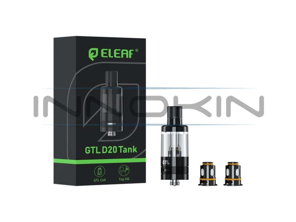 Eleaf GTL D20 Tank je jednoduchý a praktický clearomizér, který kombinuje výhody pod cartridgí a standardních atomizérů se závitem 510. Jedná se o kompaktní clearomizér se tradiční základnou s uchycením typu 510, díky čemuž je plně kompatibilní s drtivou většinou modů a baterií na trhu. Délka atomizéru činí 58,1 mm a průměr se potom zastavil na úžasných 20 mm. Díky svému minimalistickému vzezření a kompaktním rozměrům bude ladit s kterýmkoliv kompatibilním zařízením. Samotný objem tanku činí 3 ml, kapacitně si tak hravě poradí s mnohahodinovým provozem bez potřeby plnění. V případě nutnosti pak jednoduše vysunete vrchní uzávěr do strany a během pár vteřin máte opětovně doplněno.