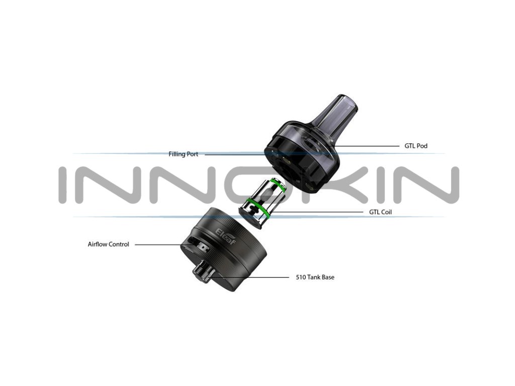 Eleaf GTL Pod Tank je revoluční a inovativní hybridní systém kombinující výhody cartridgí a standardních atomizérů se závitem 510. Za tímto zařízením stojí proslulý výrobce Eleaf. Ve vrchní části zařízení se nachází cartridge s objemem 4,5 ml. Ve spodní části se potom nachází odnímatelná základna se závitem 510, díky čemuž budete moci cartridge používat jako klasický atomizér například na mody od stejného výrobce. Je kompatibilní také s dalšími mody se závitem 510. V samotné cartridgi si potom budete moci pohodlně měnit žhavící tělísko. Eleaf GTL Pod Tank je kompatibilní se žhavícími hlavami z rodiny Eleaf GTL. Cartridge se skvěle hodí pro přímé potahování do plic (DL), ale také pro vzdušnější klasické šlukování (MTL).