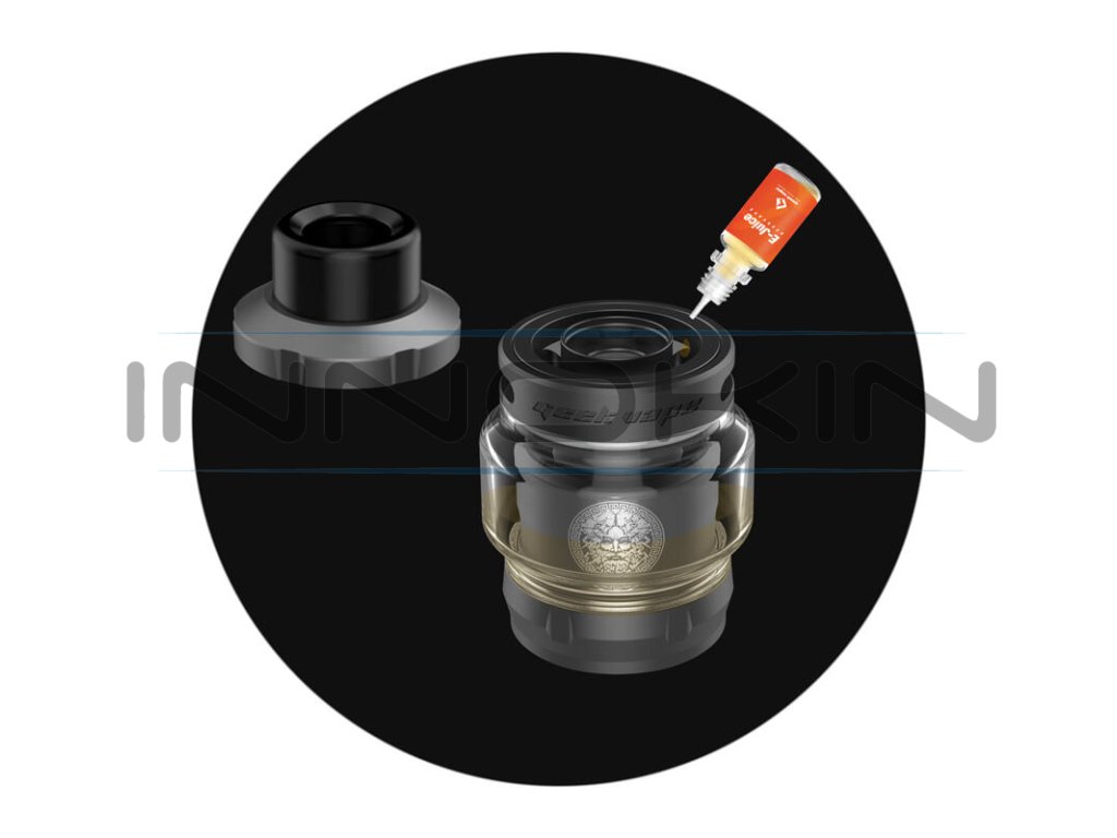 Potřebujete si do atomizéru doplnit e-liquid? Žádný problém. Jednoduchým pohybem pootočte vrchním uzávěrem a odejměte ho. Poté můžete začít plnit do jednoho ze dvou podlouhlých otvorů. Celý tank naplníte během pár vteřin. Díky velkým otvorům pro plnění si poradí i se širšími kapátky, nebo pipetami.