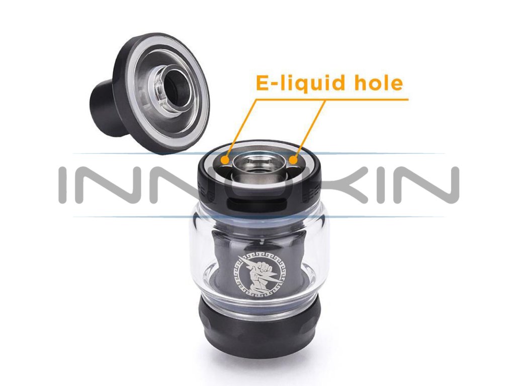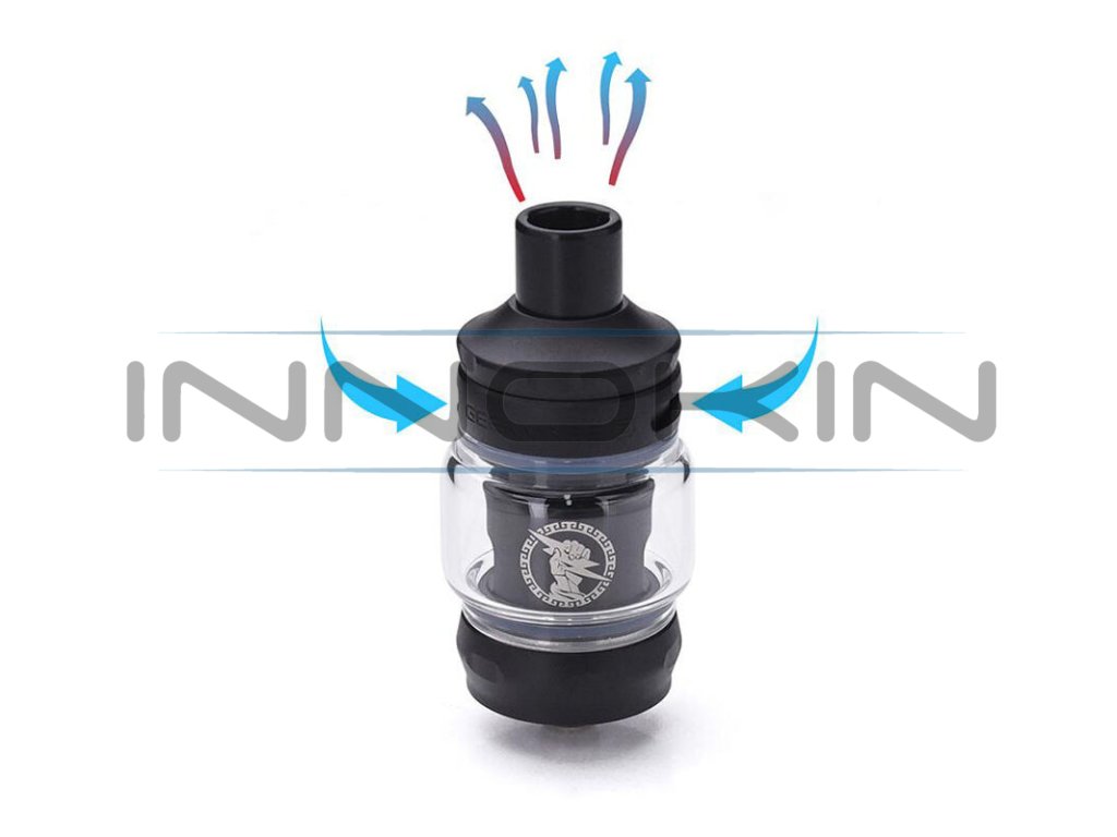 Clearomizér nabídne oblíbený a praktický systém vrchního airflow. Kroužek pro regulaci přísunu vzduchu je tak umístěn ve vrchní části atomizéru a zamezuje jakémukoliv možnému úniku e-liquidu například spodními vzduchovými otvory. Umístění airflow systému do vrchní části nabídne také prokreslenější chuť každého e-liquidu díky lepšímu ofuku tělíska.