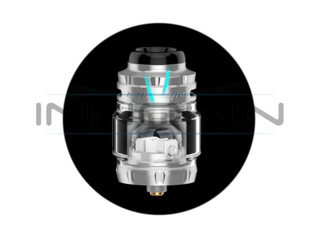 Clearomizér Zeus X Mesh je opatřen praktickým systémem vrchního přísunu vzduchu. Vzduch je tak k pletivu přiváděn efektivněji a lépe ofukuje celou základnu, díky čemuž získáte lepší chuť e-liquidu, než kdykoliv předtím. Vrchní airflow systém navíc eliminuje možné riziko protékání spodními otvory.