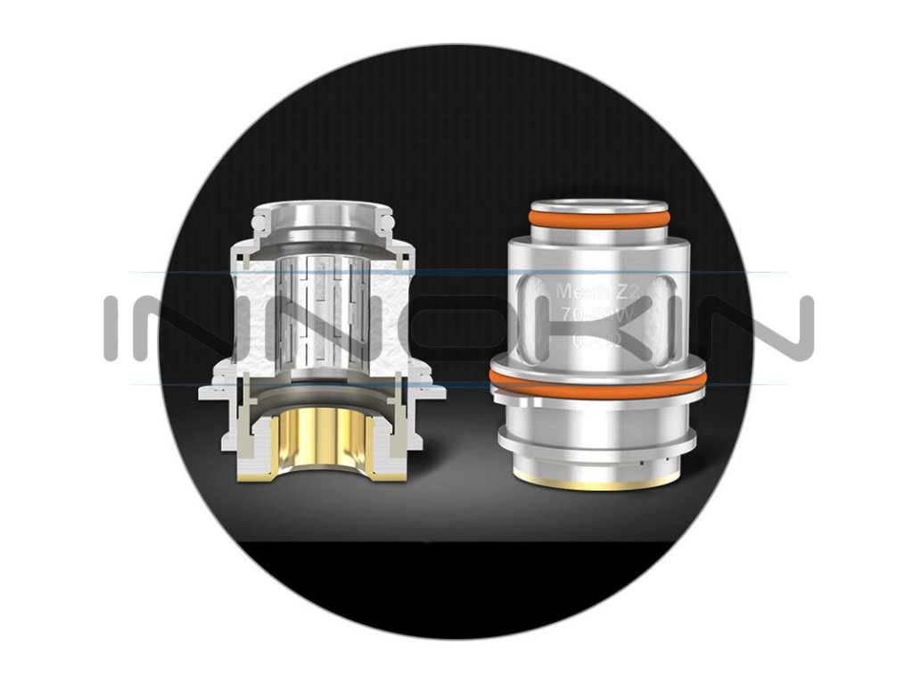O obrovskou produkci páry a využití na cloud chasing se potom postará nízkoprofilový náustek s uchycením typu 810, který najdete ve vrchní části atomizéru. Náustek si můžete také pohodlně vyměnit za svůj vlastní náustek se stejným typem uchycení. Uvnitř atomizéru se potom nachází komora pro samotné žhavící tělísko. K modelu Zeus Subohm Tank byly představeny dvě nové žhavící hlavy. První z nich nese název Zeus Z1 Mesh a disponuje odporem 0,4 ohm. V jeho jádru najdete mesh pletivo pro rychlý náběh žhavení a obrovskou produkci chutné páry. Druhé tělísko v balení se jmenuje Zeus Z2 Mesh a nabídne ještě větší produkci páry díky odporu 0,2 ohm. Pokud hledáte špičkový atomizér pro přímé potahování, GeekVape Zeus Subohm Tank vám zprostředkuje jedinečný zážitek.
