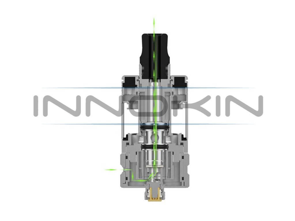 Ve spodní části se nachází airflow systém s možností plynulé regulace dle potřeby. Na spodním airflow kroužku se nachází čtyři menší otvory s průměry 0,8 mm, 1,0 mm, 1,2 mm a 1,5 mm pro utaženější MTL potah, ale také širší otvor s rozměry 1,7 x 6,2 mm pro RDL a vzdušnější MTL potahování. Možnosti jsou tak skutečně rozsáhlé.