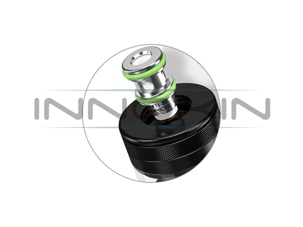 Hellvape Wirice Launcher Mini Tank přichází se zcela inovativním a unikátním systémem uchycení a instalace tělísek. Ty se vkládají do atomizéru ve vrchní části. Tělísko pouze vsadíte do atomizéru a následně dotáhnete komorou s náustkem. Během výměny tělíska se navíc uzavřou otvory pro přísun e-liquidu, nemůže se vám tak stát, že by došlo k úniku e-liquidu při výměně hlavy. Toto uchycení je navíc nesmírně praktické po stránce rychlosti výměny tělíska.