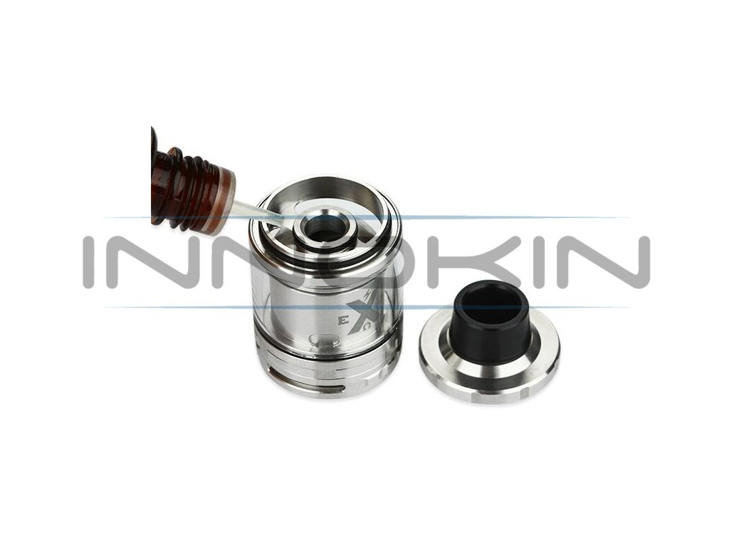 Základem EXO RTA je nerezové tělo s možností regulace sání a vrchním plněním. Speciální vnitřní kryt kotelny pak umožňuje nastavit množství přiváděného e-liquidu ke spirálce. K dispozici jsou hned dva typy velocity základny. První z nich má označení T1S a je přizpůsobena pro jednu spirálku. Naopak do T2S je možné připojit dvě spirálky a získat tak ještě lepší produkci páry. Obě dvě základny jsou součástí setu.