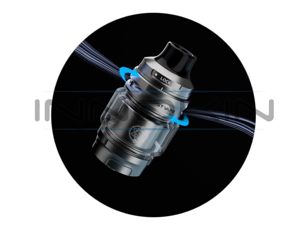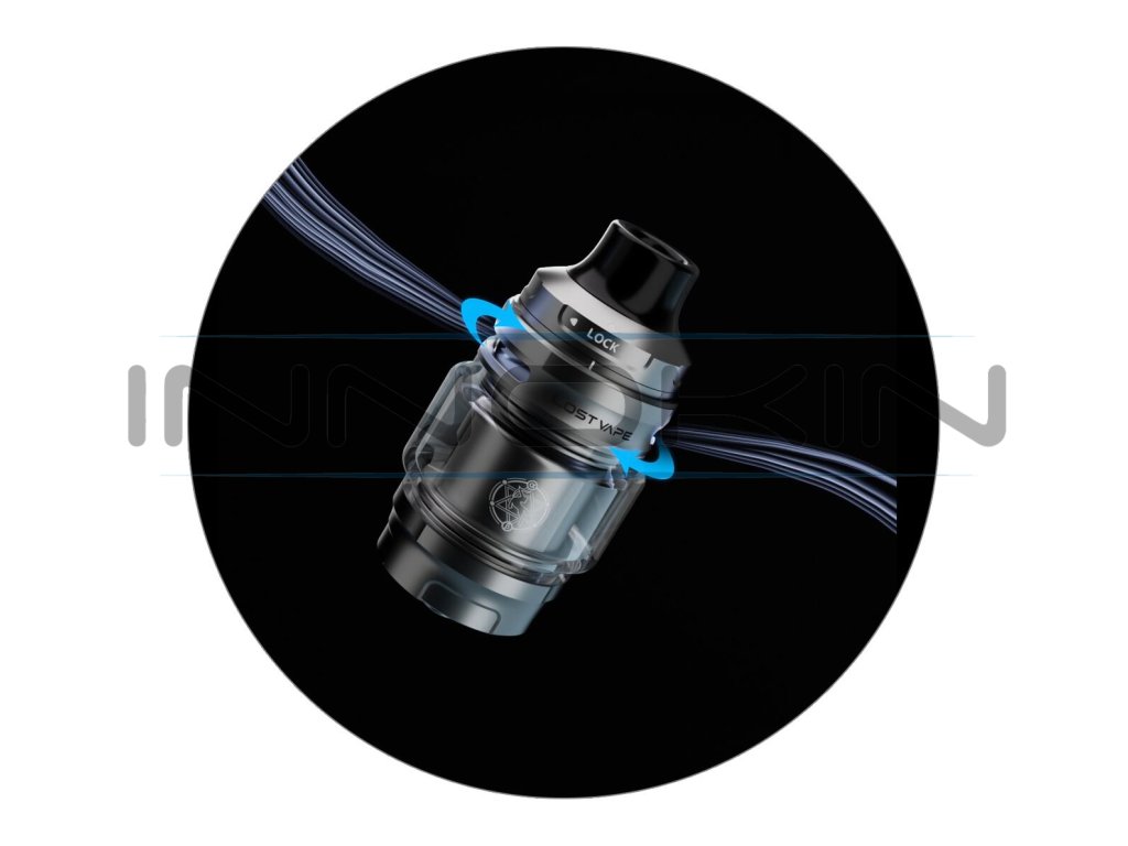 Umístění systému přívodu vzduchu do horní části atomizéru je příkladnou ukázkou kvalit výrobce Lost Vape. Díky hornímu airflow systému je přívod vzduchu a cirkulace vzduchu uvnitř atomizéru daleko plynulejší, výsledná pára hustší a s bohatší chutí. Systém je navíc plně regulovatelný, kolik vzduchu si pustíte do atomizéru je tak plně ve vaší režii.