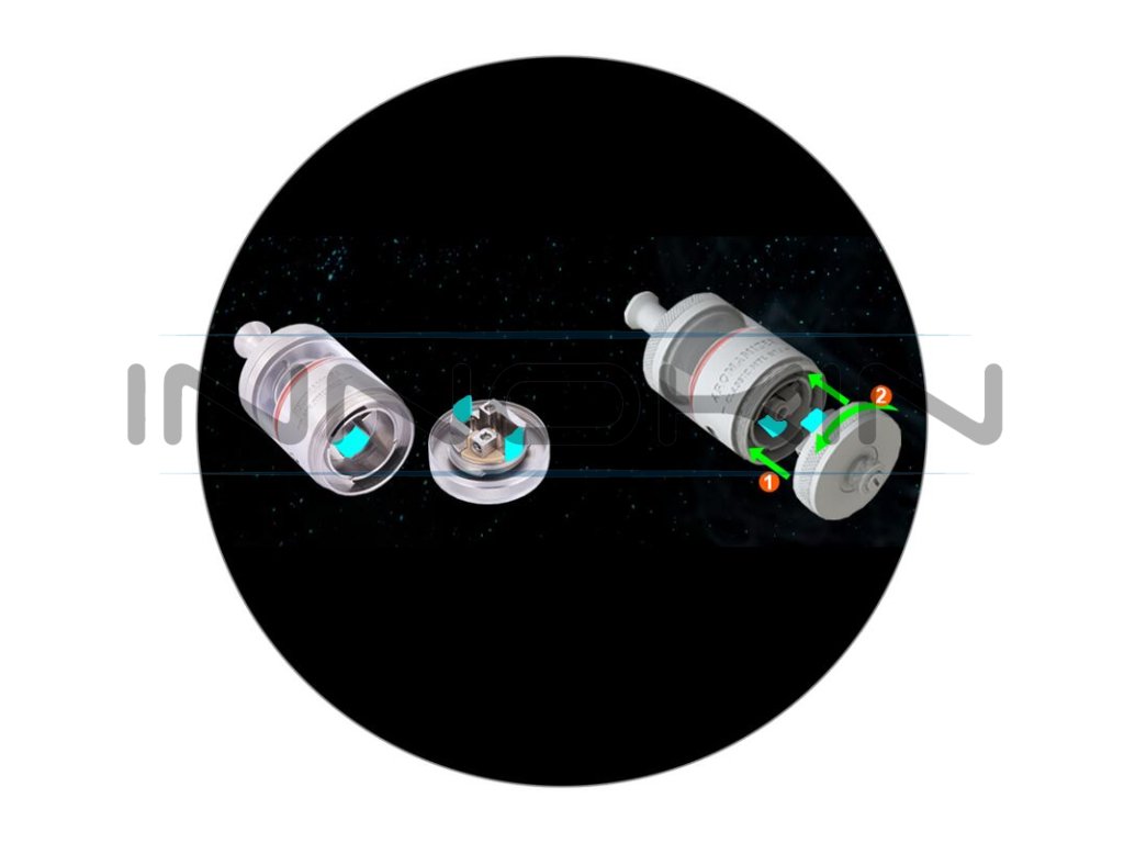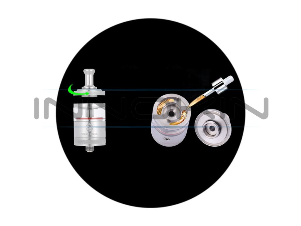 Objem tanku na e-liquid činí 3,5 ml, díky této větší kapacitě se můžete těšit na dlouhé hodiny nerušeného potahování. V případě potřeby doplnění pak jednoduše pootočíte vrchním uzávěrem a během pár vteřin si doplníte potřebné množství e-liquidu zpět do tanku. S tímto systémem plnění si atomizér pohodlně doplníte naprosto kdekoliv a kdykoliv.