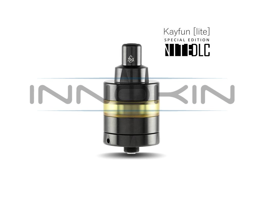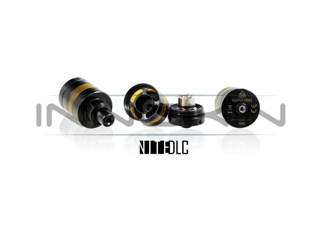 Oblíbený clearomizér Kayfun Lite si budete moci nově pořídit také v luxusní Nite DLC edici. Zkratka DLC se používá pro techniku zpracování povrchu zvanou Diamond-like Carbon. Tato speciální technika si přivlastňuje podobné vlastnosti, jako má diamant, tedy obrovskou pevnost a zvýšenou odolnost vůči poškrábání a dalším vnějším vlivům. Clearomizér Kayfun Lite Nite DLC je vyroben z vysoce kvalitní nerezové oceli a je rovněž plně biokompatibilní, nevyvolává tedy jakékoliv dráždivé reakce v těle. Speciální verze tohoto atomizéru pro klasické šlukování je určena těm nejnáročnějším uživatelům, kteří očekávají nekompromisní kvalitu.