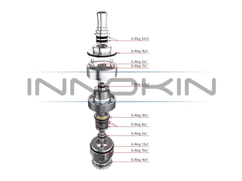 V jádru atomizéru na vás potom čeká populární single-coil základna se dvěma protilehlými sloupky, s jejímž zprovozněním si budou hravě rozumět také začátečníci v oblasti DIY atomizérů. U základny najdete také samotný výstup vzduchu a vzduchový systém AEROKON. Jedná se o speciální vzduchový hrot, který je možné vysouvat a zasouvat otáčením samotného centrpinu. Díky tomu je dosaženo mnohem přesnější tuhosti výsledného potahu a prokreslenější chuti. Airflow je nastavitelné s průměrem mezi 0 - 1,8 mm, možnosti jsou skutečně rozsáhlé. Atomizér nabídne také populární regulaci juiceflow, tento systém můžete libovolně otevírat a zavírat vysouváním a zasouváním spodní části základny u centrpinu. SvoëMesto Kayfun X MTL RTA 22mm oplývá nezměrnou variabilitou a umožňuje všem uživatelům dosáhnout kýžené kvality potahu. Jedná se o prvotřídní atomizér, který cílí na ty nejnáročnější vyznavače MTL.