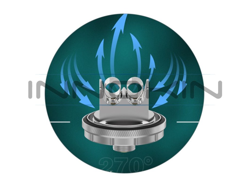 Poté, co vzduch vstoupí do atomizéru skrz vrchní airflow systém, proudí směrem k základně. Do základny je přiváděn ze spodní části, odkud také ofukuje samotné spirálky. Revoluční systém 270° Honeycomb, kterým je opatřena samotná základna, je skutečně dechberoucí. Atomizér si naprosto hravě poradí s kterýmkoliv e-liquidem. Ať už preferujete jednosložkové náplně, nebo složité a komplexní ovocné a dezertové směsi, všechny chutě vykreslí naprosto dokonale.