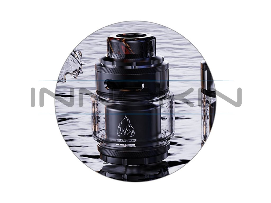 Základní objem tanku činí 2 ml, tuto kapacitu si však budete moci pohodlně navýšit až na 5,5 ml osazením většího pyrexového těla z balení. Mimo obrovskou kapacitu disponuje atomizér také oblíbeným systémem vrchního doplňování. V těle se potom nachází inovativní "WOW" základna pro instalaci dvou spirálek souběžně. Tato základna zároveň nabídne unikátní systém přívodu vzduchu s názvem 270° Honeycomb. Vzduch je přiváděn řadou menších otvorů pod spirálky, odkud poté proudí směrem nahoru do komory. Výsledná chuť je doslova ohromující. Samotnou tuhost potahu si poté můžete ještě regulovat pomocí vrchního systému airflow. THC Blaze RTA je ve všech směrech promyšlený DL atomizér, se kterým se nebudete ani na vteřinu nudit. Zaručeně splní požadavky i těch nejnáročnějších příznivců přímého potahování do plic.