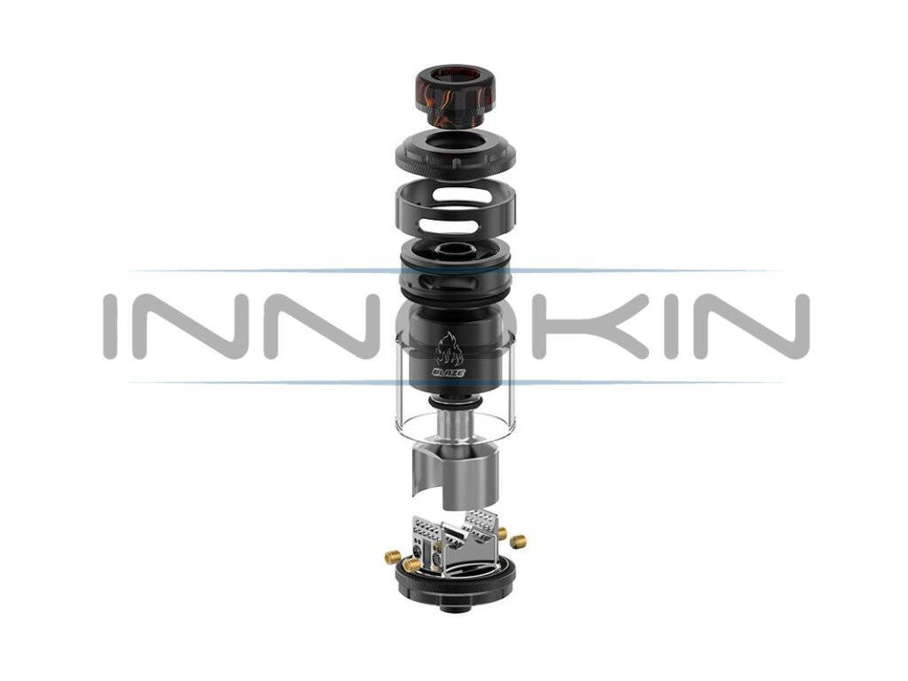 Základní objem tanku činí 2 ml, tuto kapacitu si však budete moci pohodlně navýšit až na 5,5 ml osazením většího pyrexového těla z balení. Mimo obrovskou kapacitu disponuje atomizér také oblíbeným systémem vrchního doplňování. V těle se potom nachází inovativní "WOW" základna pro instalaci dvou spirálek souběžně. Tato základna zároveň nabídne unikátní systém přívodu vzduchu s názvem 270° Honeycomb. Vzduch je přiváděn řadou menších otvorů pod spirálky, odkud poté proudí směrem nahoru do komory. Výsledná chuť je doslova ohromující. Samotnou tuhost potahu si poté můžete ještě regulovat pomocí vrchního systému airflow. THC Blaze RTA je ve všech směrech promyšlený DL atomizér, se kterým se nebudete ani na vteřinu nudit. Zaručeně splní požadavky i těch nejnáročnějších příznivců přímého potahování do plic.
