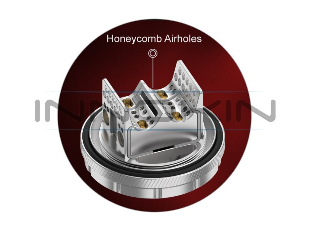 Poté, co vzduch vstoupí do atomizéru skrz vrchní airflow systém, proudí směrem k základně. Do základny je přiváděn ze spodní části, odkud také ofukuje samotné spirálky. Revoluční systém 270° Honeycomb, kterým je opatřena samotná základna, je skutečně dechberoucí. Atomizér si naprosto hravě poradí s kterýmkoliv e-liquidem. Ať už preferujete jednosložkové náplně, nebo složité a komplexní ovocné a dezertové směsi, všechny chutě vykreslí naprosto dokonale.