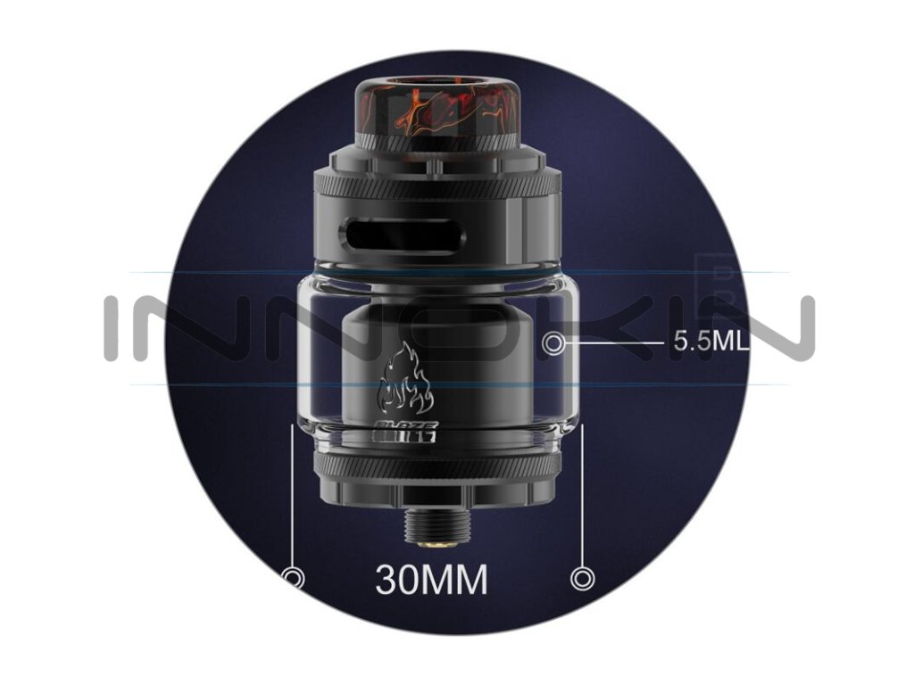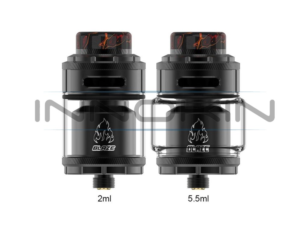 Základní objem tanku činí 2 ml, tuto kapacitu si však budete moci pohodlně navýšit až na 5,5 ml osazením většího pyrexového těla z balení. Mimo obrovskou kapacitu disponuje atomizér také oblíbeným systémem vrchního doplňování. V těle se potom nachází inovativní "WOW" základna pro instalaci dvou spirálek souběžně. Tato základna zároveň nabídne unikátní systém přívodu vzduchu s názvem 270° Honeycomb. Vzduch je přiváděn řadou menších otvorů pod spirálky, odkud poté proudí směrem nahoru do komory. Výsledná chuť je doslova ohromující. Samotnou tuhost potahu si poté můžete ještě regulovat pomocí vrchního systému airflow. THC Blaze RTA je ve všech směrech promyšlený DL atomizér, se kterým se nebudete ani na vteřinu nudit. Zaručeně splní požadavky i těch nejnáročnějších příznivců přímého potahování do plic.